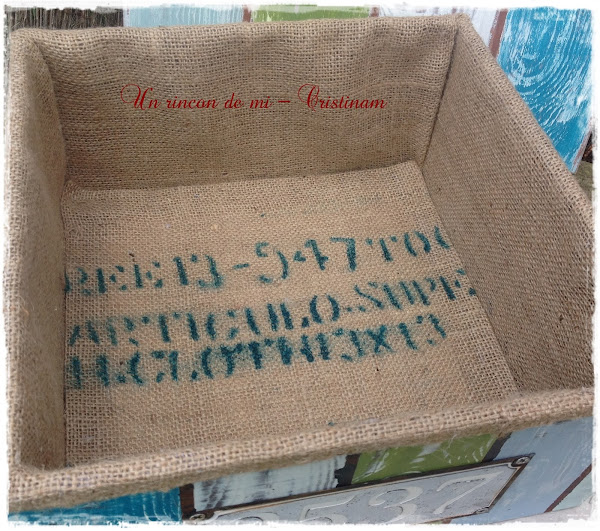 Por dentro he forrado la pieza con tela de arpillera y la caja esta lista .
