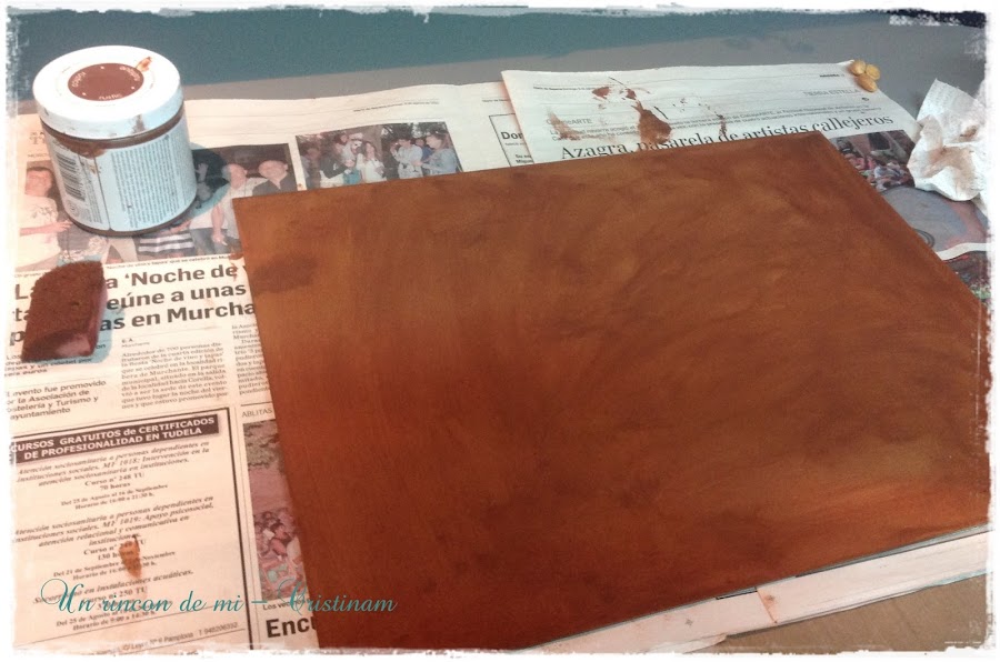 Una vez seca la pintura blanca doy a toda la pieza cera incolora.