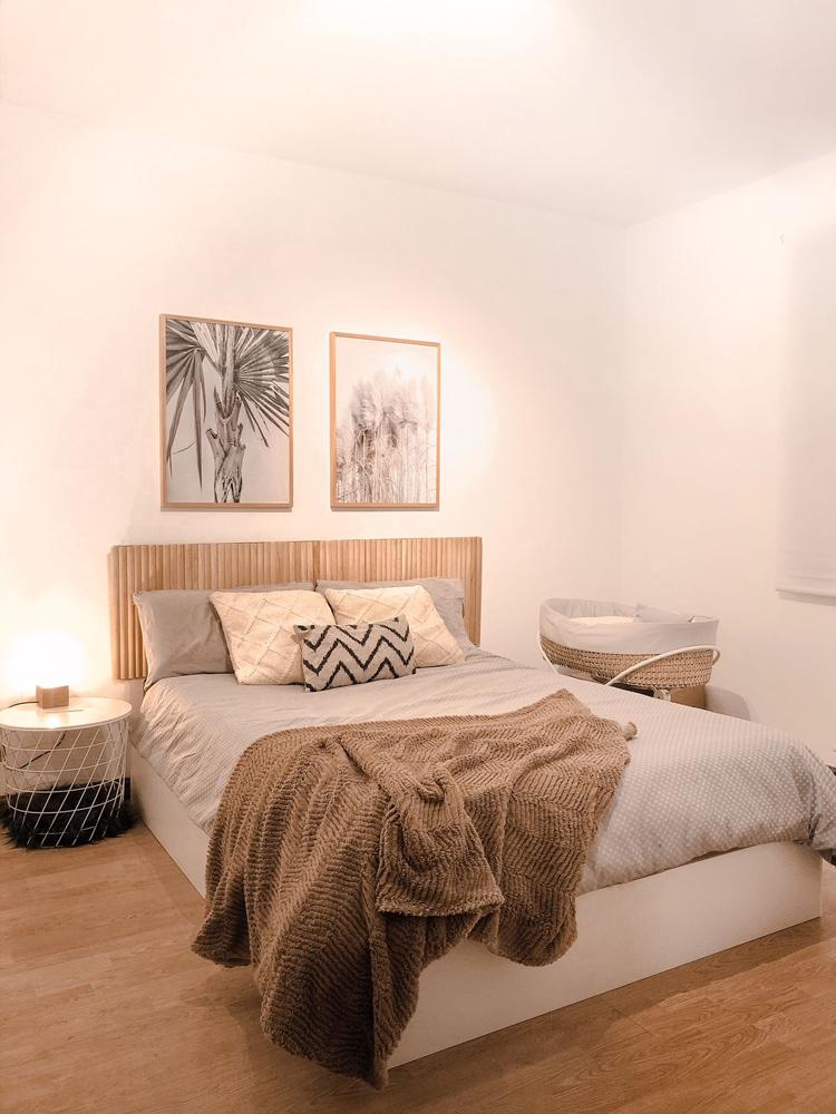 El tablero de DM de 162’5x50cm me costó unos 7€. Los 13 listones de madera semicirculares me costaron 35€ aprox. En total, este cabecero de madera me salió por menos de 50€. Un precio imposible de encontrar para un cabecero con estas características y medidas. Además, lo mejor y más especial: ¡hecho por mí misma! Solo por eso ya me gusta más