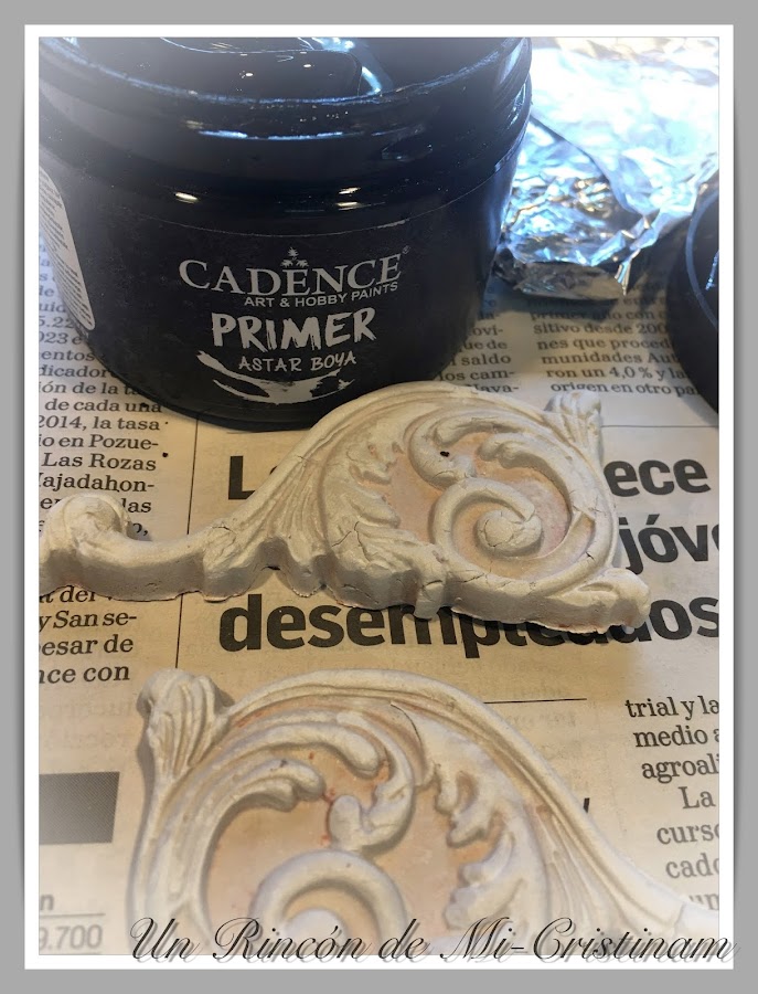Lo primero que hago es pintarlos con Gesso Negro que se seca muy rápidamente y cubre genial