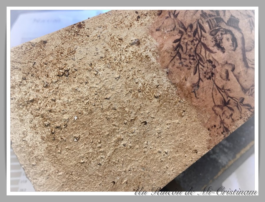 Esta pintura tiene grano de arena que aporta este relieve tan bonito y que luego permite jugar a contrastes y efectos que adoro.