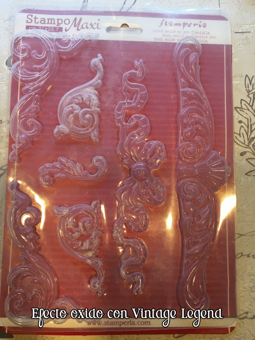 También he utilizado un molde de la casa Stamperia que luego os lo mostraré mejor