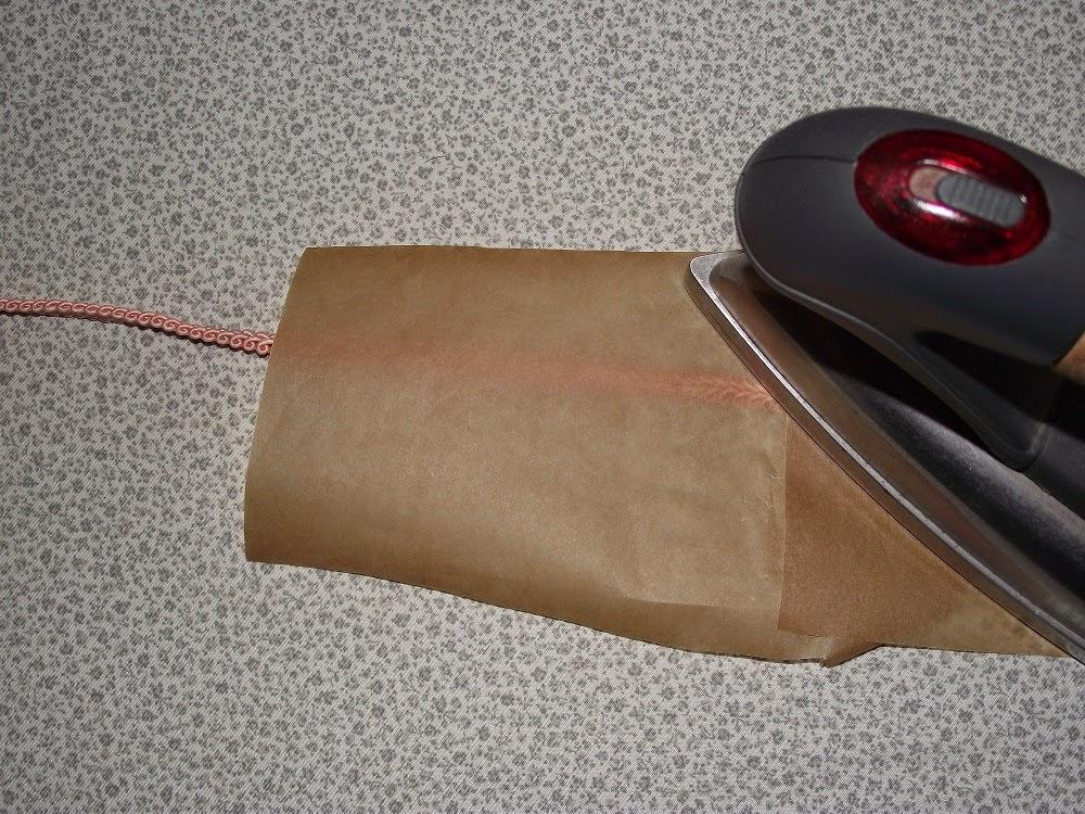 Cuando la tela esté seca la planchamos colocando en medio un trozo de papel de horno, de lo contrario la plancha se pegaría a la tela y estropearíamos las dos cosas: la tela y la plancha.