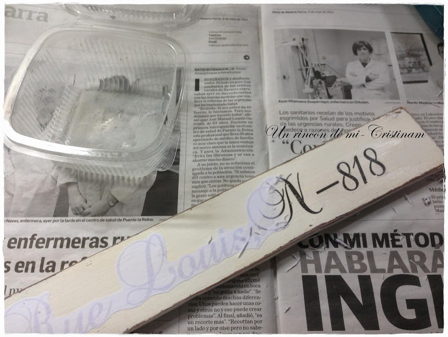 Texto pegado y esperando a que se seque bien.. mientras tanto he pintado el marco superior igual que la tabla.