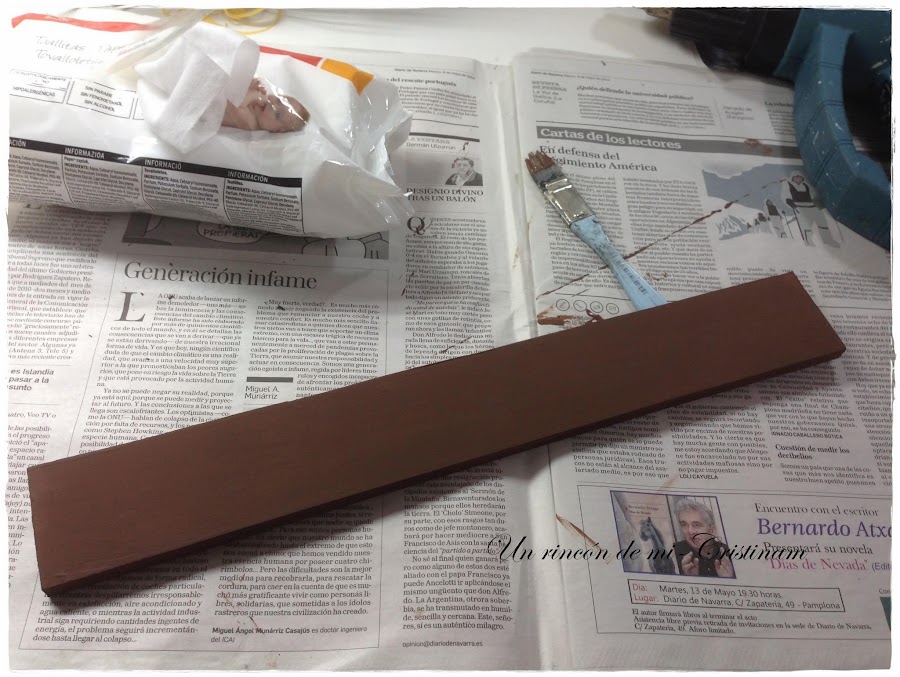 Comienzo primero con una tabla de madera... no he puesto la foto inicial de como era... pero os puedo decir que sólo le he dado una capa de pintura marrón en la foto que os muestro :