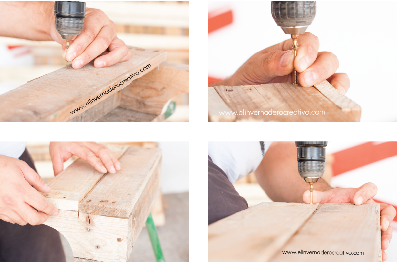 Es hora de ensamblar todas las piezas. Con taladro en mano y los tornillos cerca, empieza a atornillar la parte trasera, la delantera y los laterales, por ahora, no los toques.
