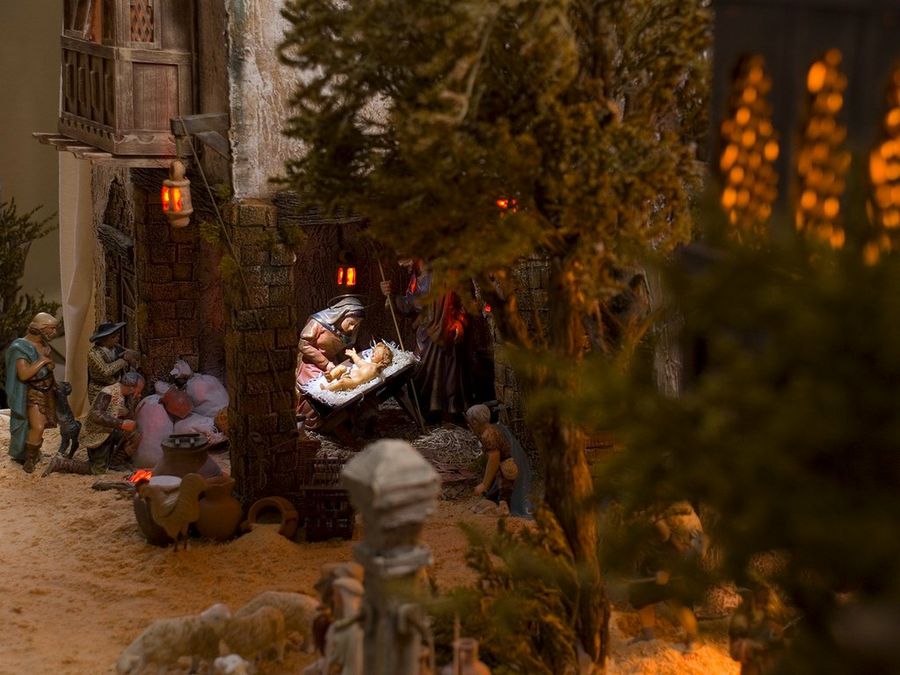 El plano final es para la escena protagonista del Belén y de la Navidad. La mágica iluminación creada por nuestro amigo Joaquín Gaviño se debe a una bombilla LED orientada hacia el pesebre.
