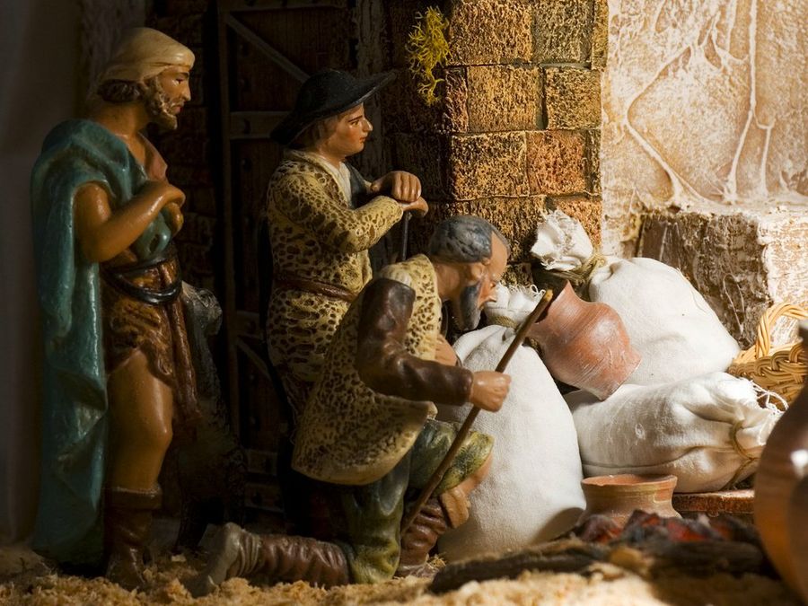 Los buenos belenistas como Joaquín siempre evitan el exceso de figuras, que provocan confusión y restan verosimilitud. El escenario y los personajes guardan un atractivo equilibrio, que se aleja por igual de los parajes desolados y las multitudes caóticas.