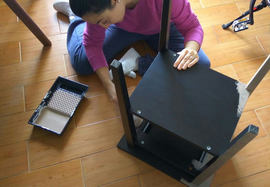 Esta mesita de la entrada (también completamente negra) también dio un cambiazo espectacular!!!! Claro que con la silla que luce a su vera queda sensacional.