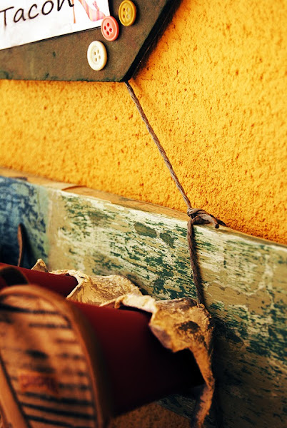 He hecho un pequeño cartelito con el contrachapado de las cajas de fresas y le he puesto unos botones que tenía tirados por casa. El lugar elegido para el zapatero es debajo del mueble de la entrada. A mano para salir de casa en cualquier momento.