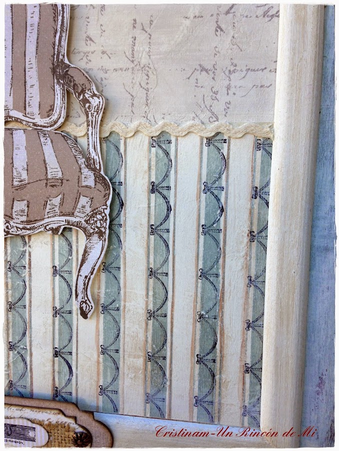 Con troqueles de Sizzix he realizado el letrero que os muestro... complemento con sellos y tela arpillera.