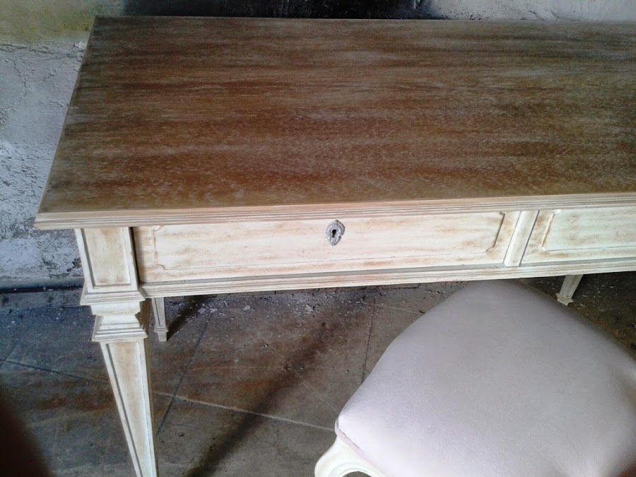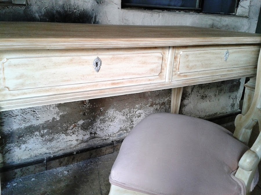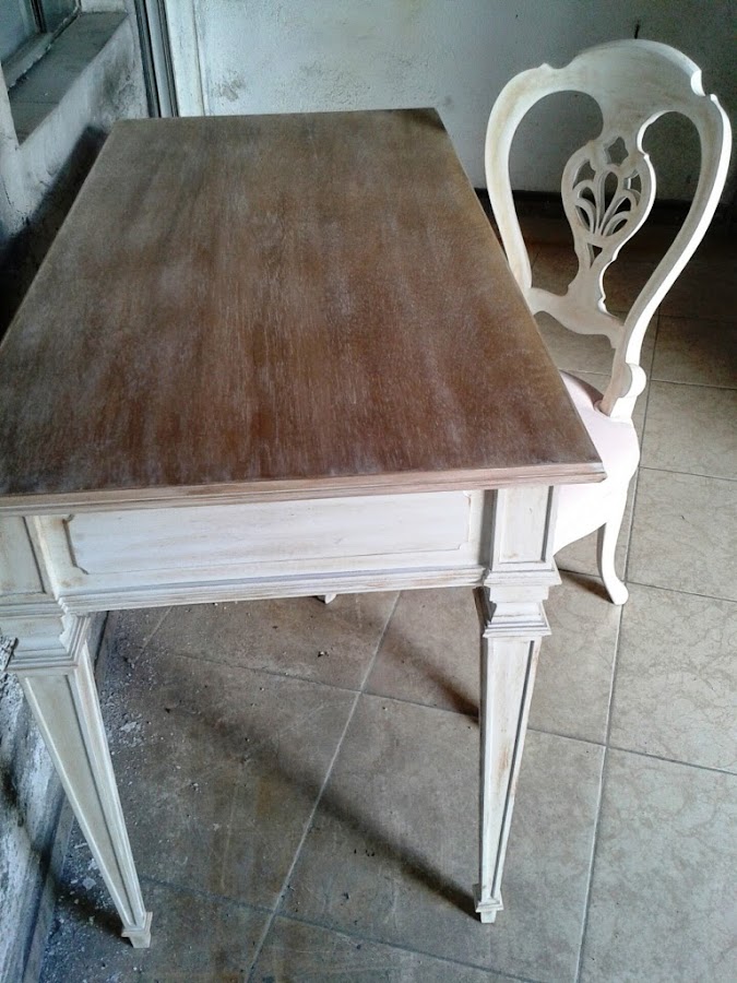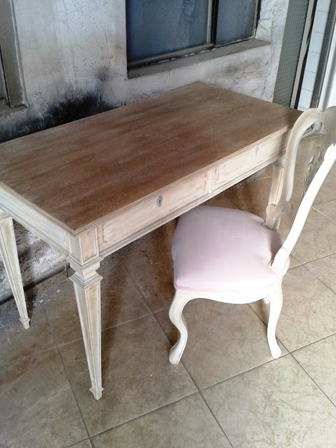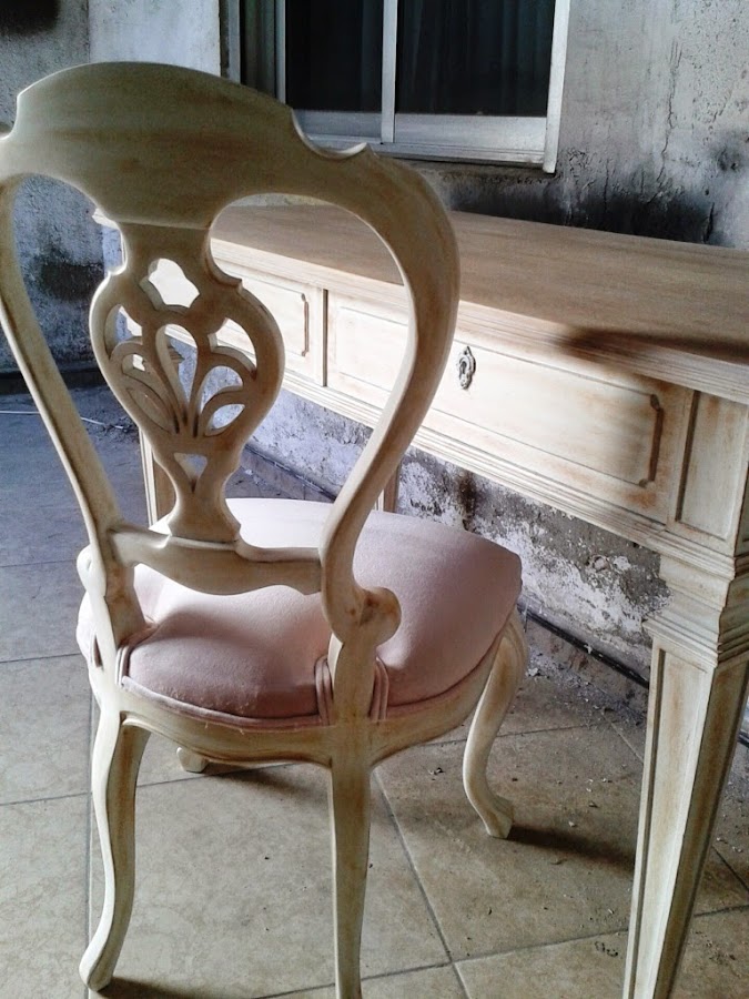 ¿A quién no le gustan esos rincones decorados en tonos pastel, maderas lavadas, muebles patinados y un delicado ramillete de flores silvestres? Pues precisamente eso es lo que hemos hecho con estos muebles. No tenemos fotos del antes de la silla, pero ya os digo que era en color madera. Tras su paso por el taller, han cambiado completamente de estilo, combinando a la perfección. También hemos cambiado la tapicería, por una chenilla en un rosa pálido, realizando esta vez un tapizado con doble cordón. El sobre de la mesa ha habido que cambiarlo por su deterioro, y se le ha aplicado una pátina blanca sobre la madera, que destaca la veta de la misma. El conjunto resulta de lo más atarctivo, siendo válido para cualquier rincón de la casa.Simplemente encantador.