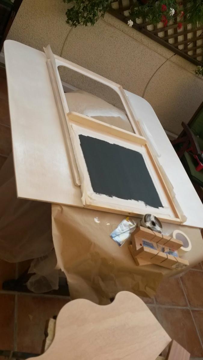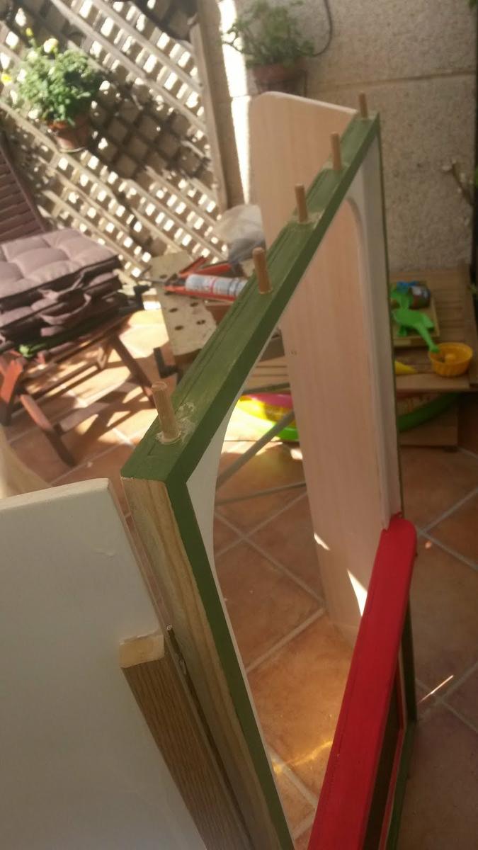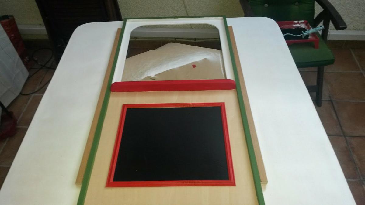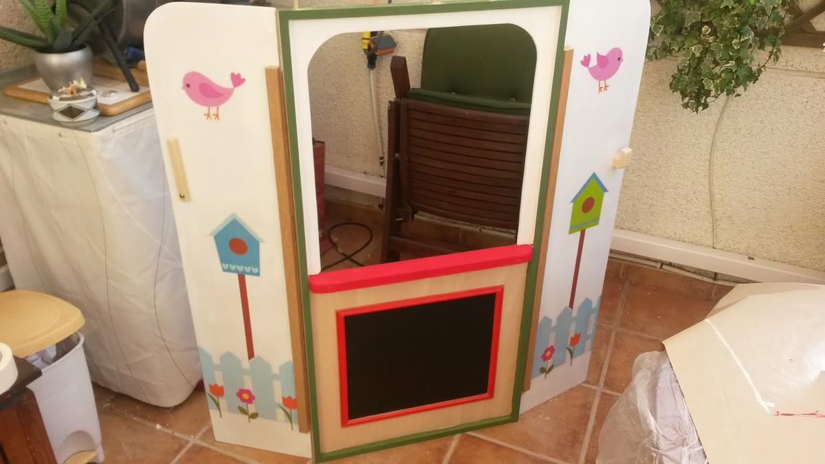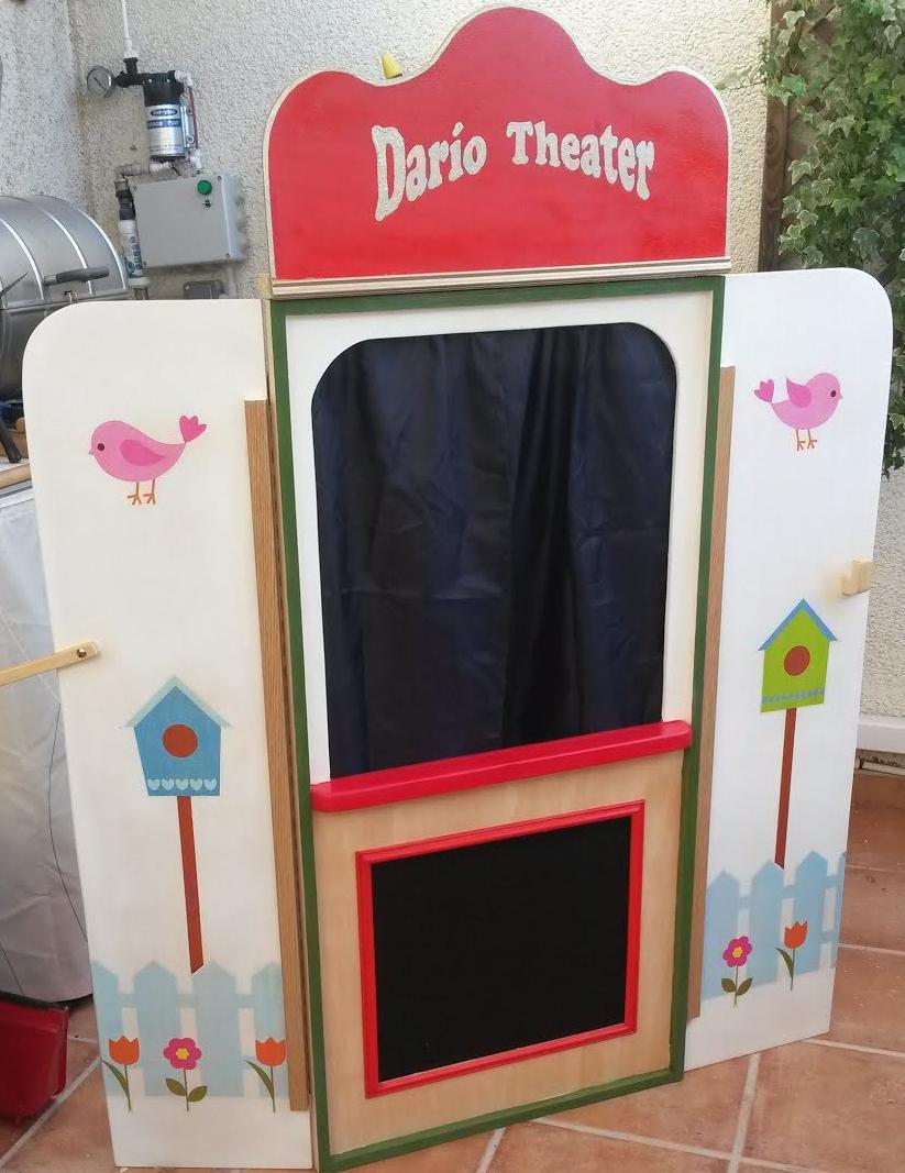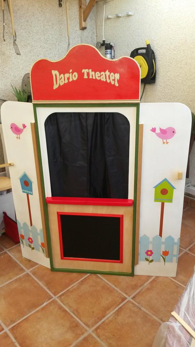 !!! Trabajo concluido !!! , Darío ya tiene su teatro de guiñol y además una pizarra para pintar.