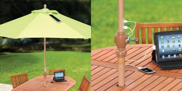 2 Sombrilla solar. Se trata de modelos que llevan incorporados pequeñas placas solares en su superficie y que permiten recargar dispositivos electrónicos.