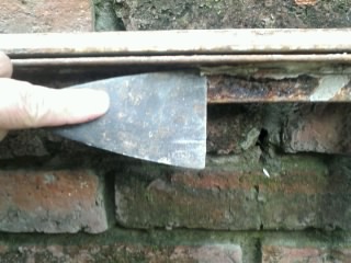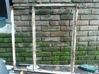Esta es la ventana que saqué del contenedor; estaba llena de herrumbre, masilla vieja e incluso restos de vidrios rotos.