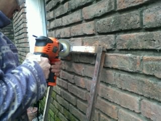 Empecé por cortar las piezas que no servían o que estaban demasiado arruinadas. Así terminé por sacar el espacio más chico del marco y me quedé sólo con dos marcos grandes, unidos por las bisagras de la ventana. Al final, terminé cortando las bisagras y separando los marcos...