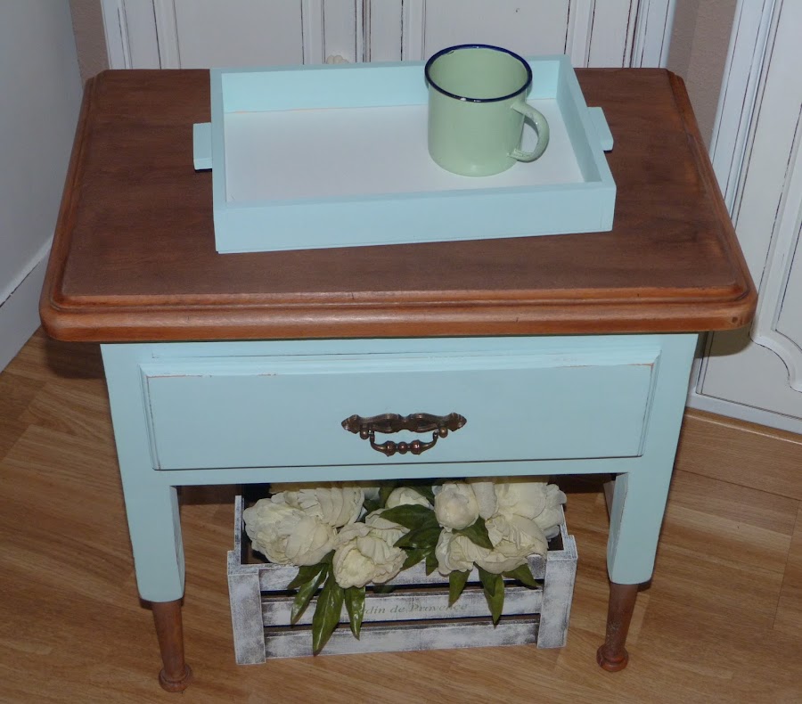 Ya veis que no es gran cosa, pero me apetecía hacer algo con ella. Con la inspiración del mint y la preciosa veta de su tapa, me he animado a darle un aire totalmente renovado.
