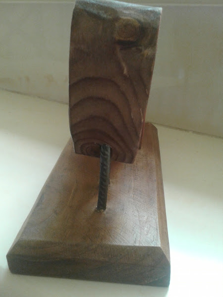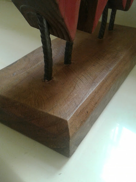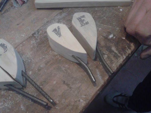 Como el agujero de la base es un milímetro menor que el grosor de las varillas, estas entran a presión. Quedando fuertemente fijadas, para ello pongo una madera para poder golpear sin dañar los corazones.