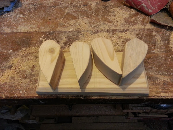 Estos son los recortes, que como vemos en la imagen a un lado ya los tengo lijados y al otro la madera está en estado salvaje. (Que agradecida de trabajar es la madera)