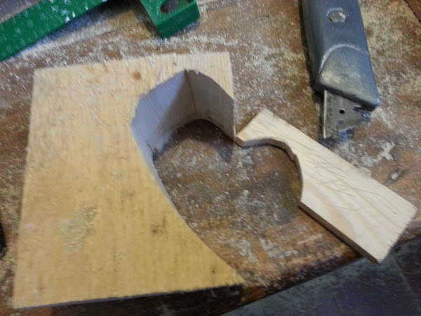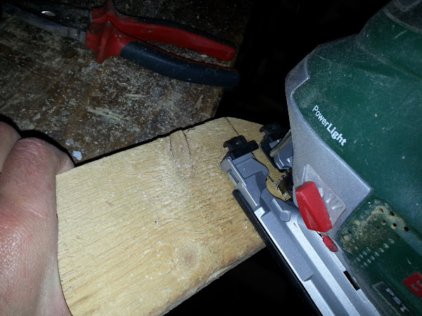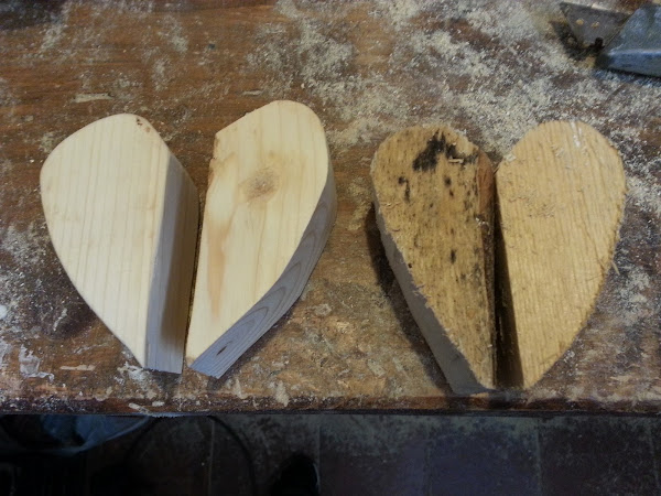 Procedo a cortar los medios corazones, con la sierra de calar, con la hoja de cortes curvos.