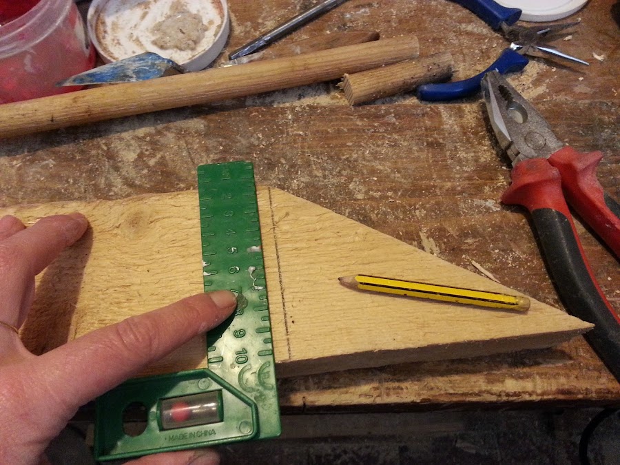 Con la escuadra marco los cortes, para escuadrar los soportes de las velas y este me salga recto.