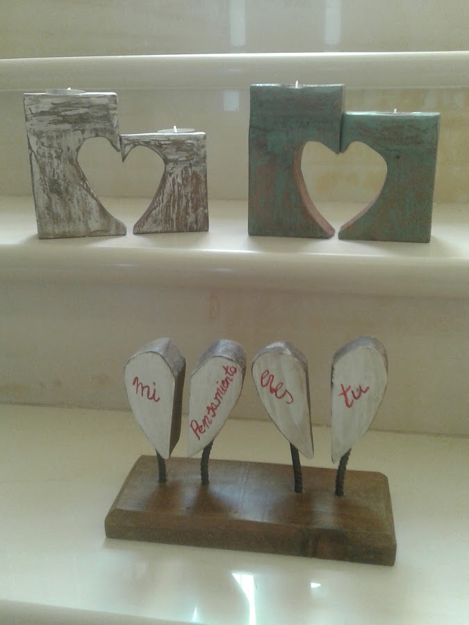 Hago una plantilla de corazón y lo pongo sobre las maderas que serán los soportes de las velas corazón, para marcarlo