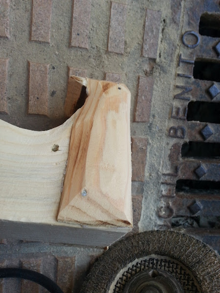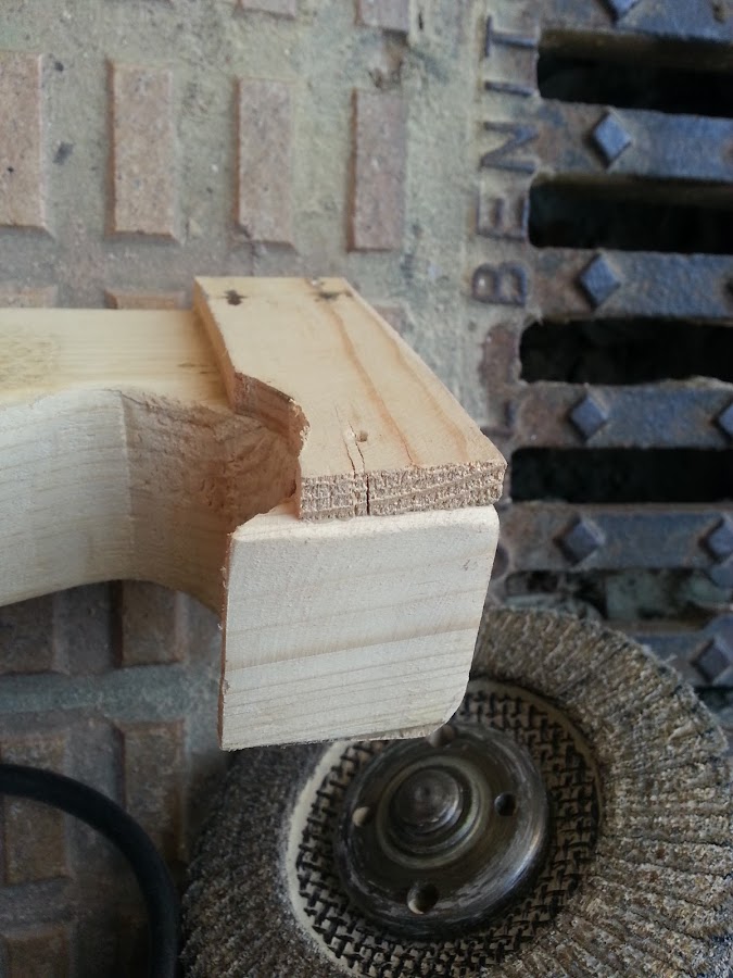 Ahora con la amoladora y el disco de lijar madera, voy moldeando el añadido que hice.
