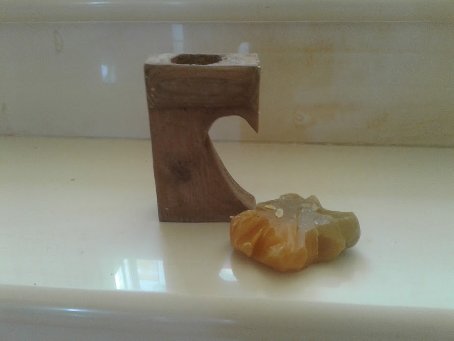 En esta imagen aun falta que le frote con la lana de acero. Para finalizar el acabado las velas las doy una mano de cera con betún de judea.