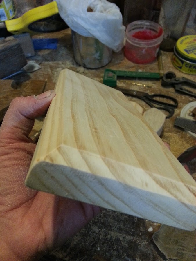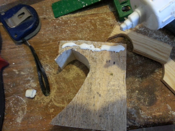 Una vez fijo con cola de carpintero, las tablilla que corté y di forma, logrando así tener mayor grosor la parte superior de la vela.