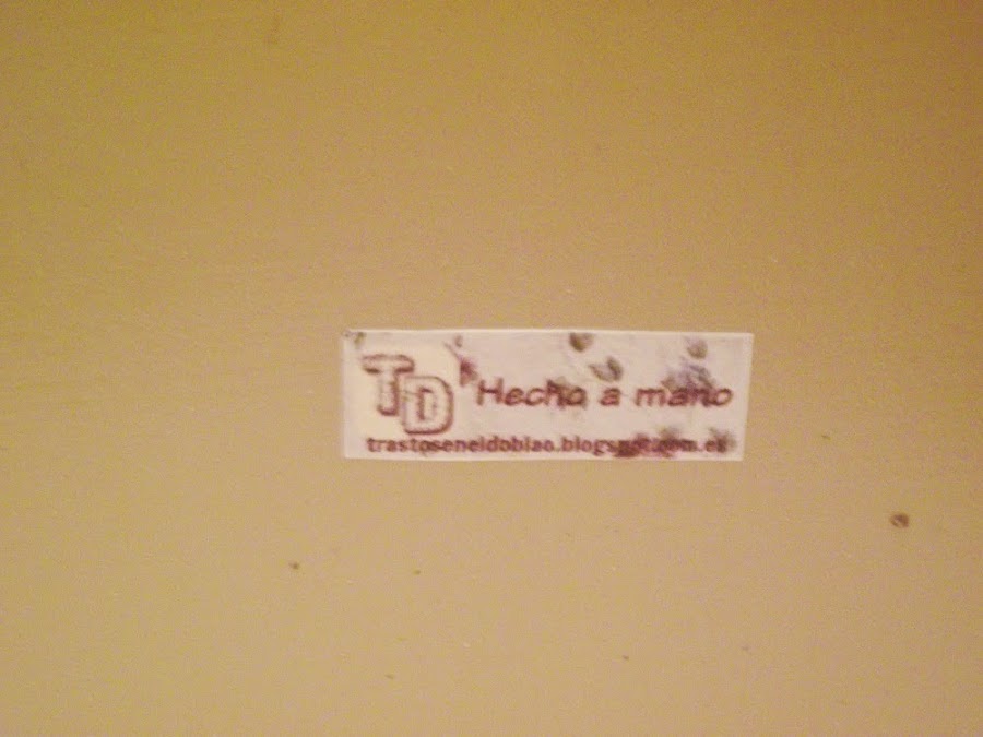 Por último os quería enseñar el detalle que he puesto en la base del pañalero y que me hace una ilusión especial por ser la primera vez: la etiqueta, con el favicón de Trastos en el Doblao y la leyenda "Hecho a mano". A partir de ahora la voy a colocar en los trabajos que no sean para mí.