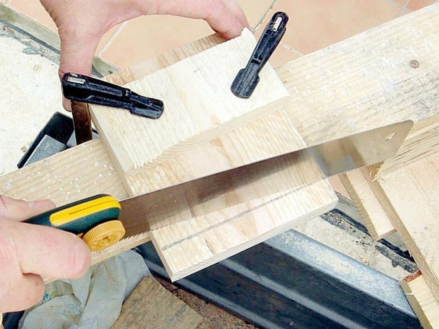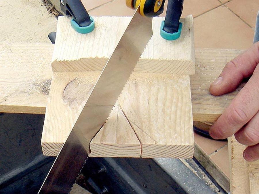 Marcamos el hueco triangular de las patas, y realizamos el corte despacio y con cuidado. La sierra japonesa tiene la hoja muy fina, lo cual permite cortar bien y con poco esfuerzo.