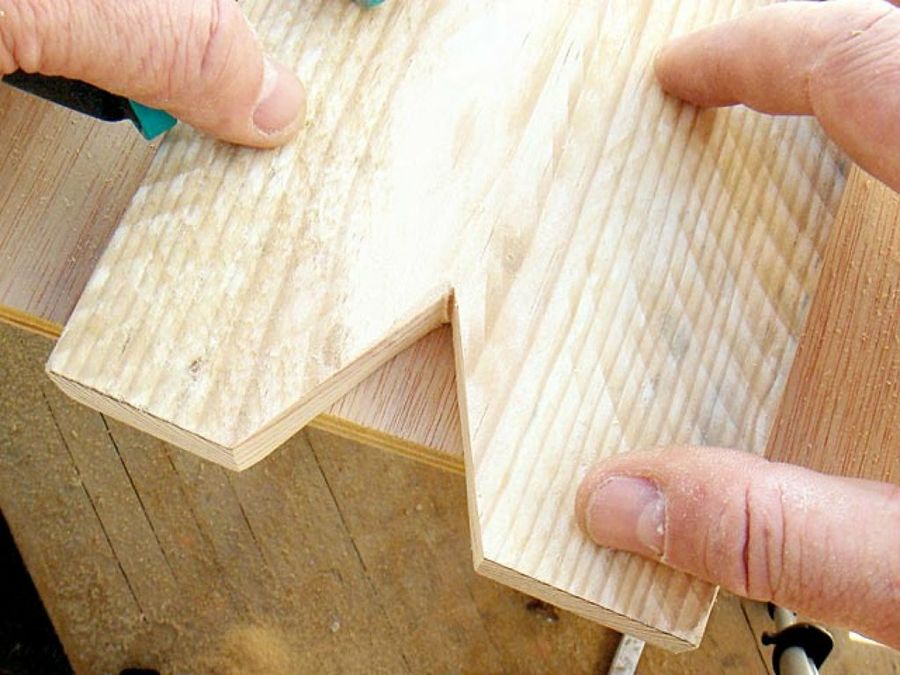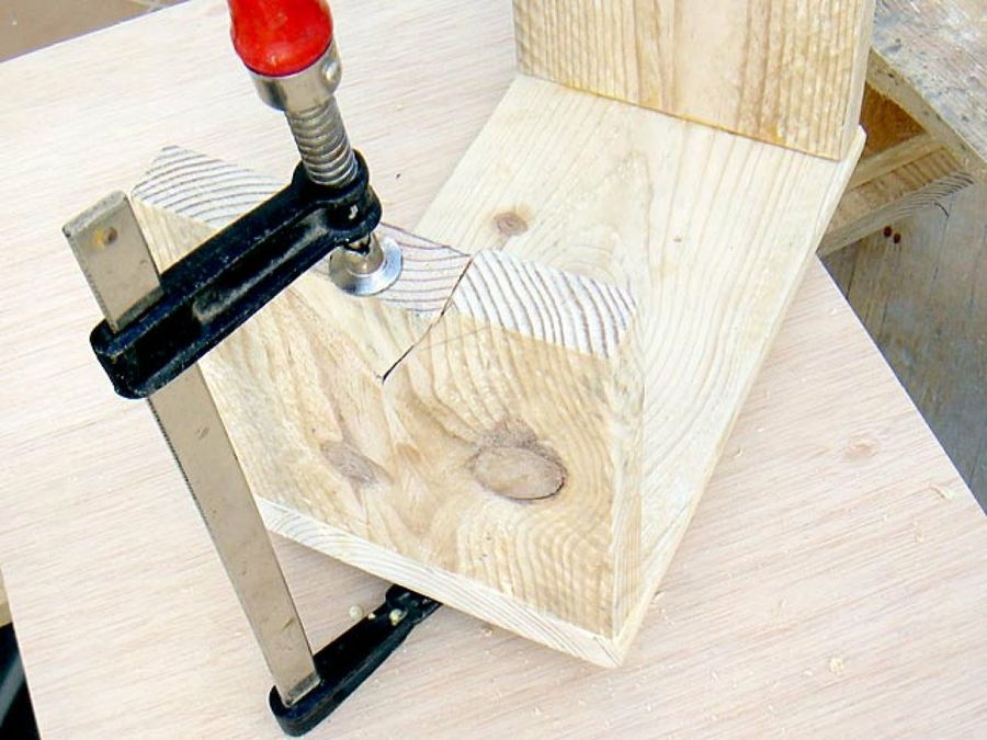 De esta forma tan sencilla reforzamos los ángulos del taburete. Basta encolar dos pequeños listones de sección cuadrada, que junto con las espigas otorgan suficiente robustez.