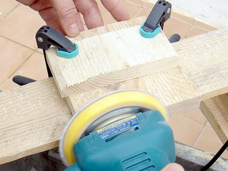 Una vez cortada la madera, repasamos el canto con la lijadora. Es importante conseguir una superficie perfectamente plana, para que el encolado sea impecable.