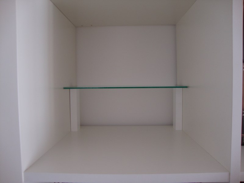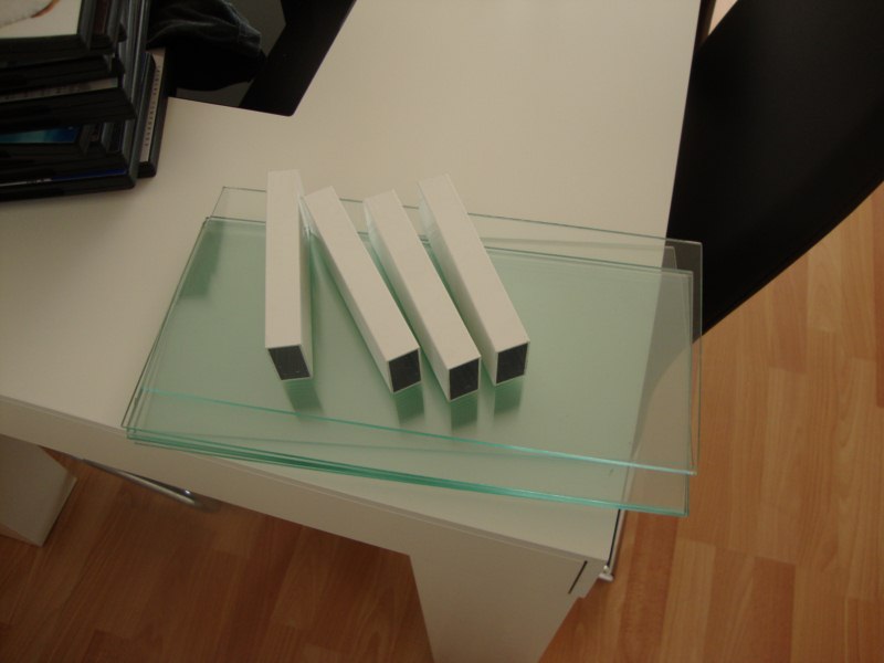 Primero corté unas baldas de cristal y las pulí para no contarnos con los cantos.