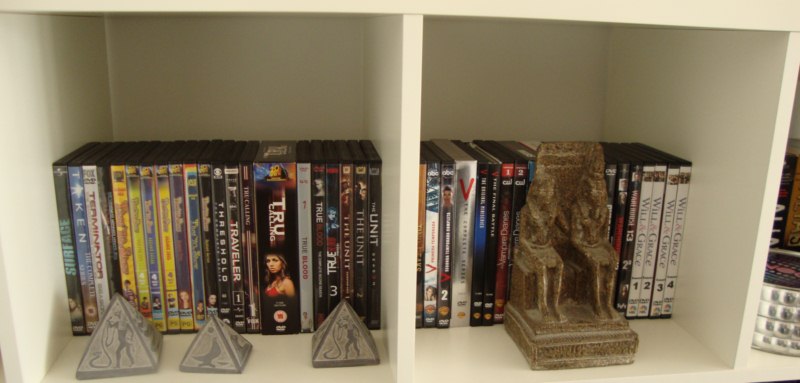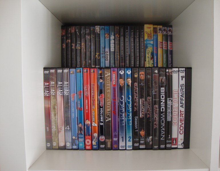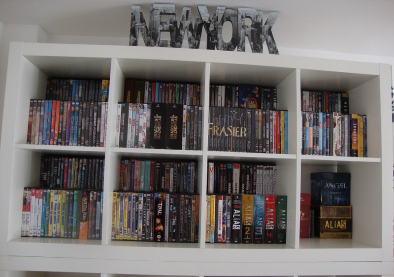 De esta forma tengo dos filas de dvds en cada hueco. Son visibles y de fácil acceso a ellos.