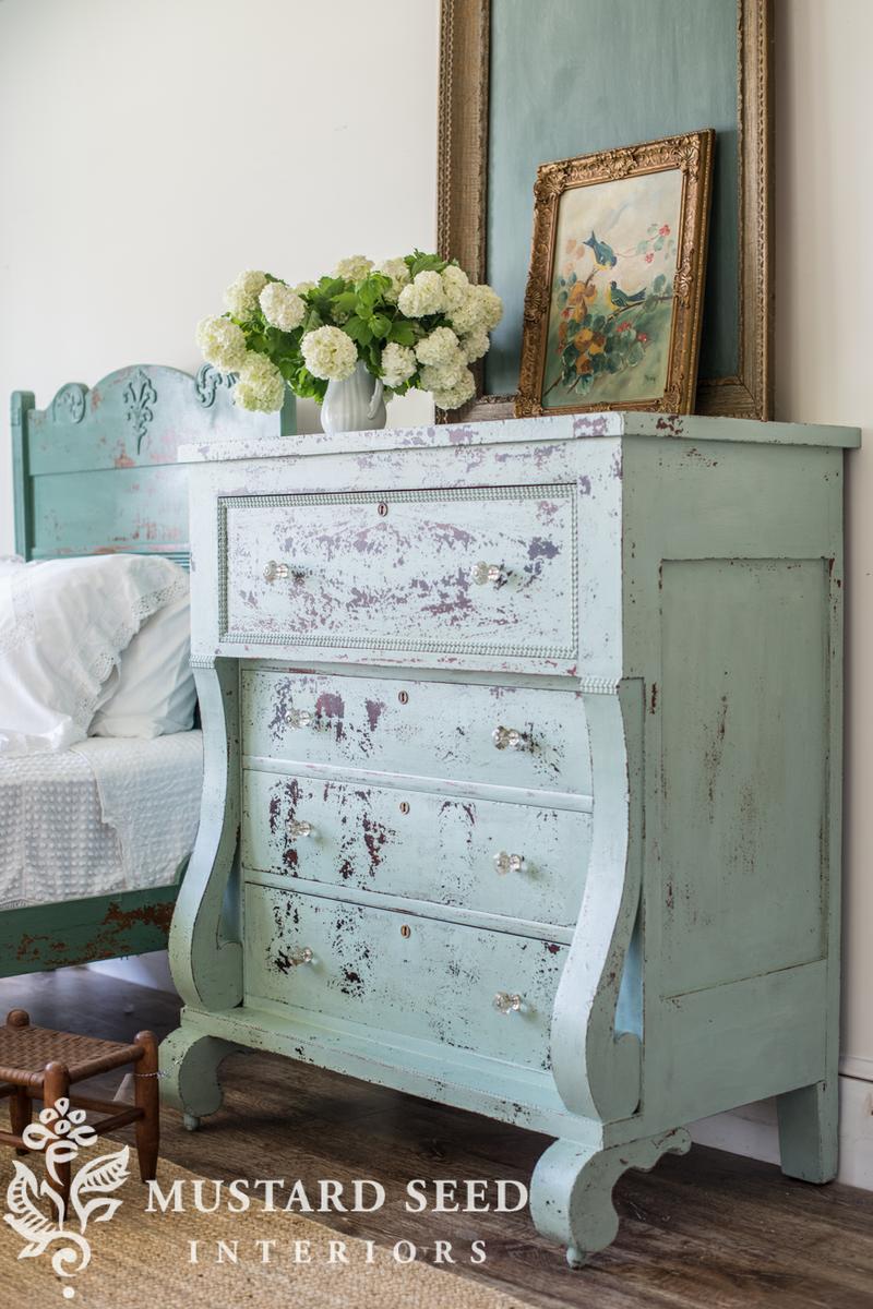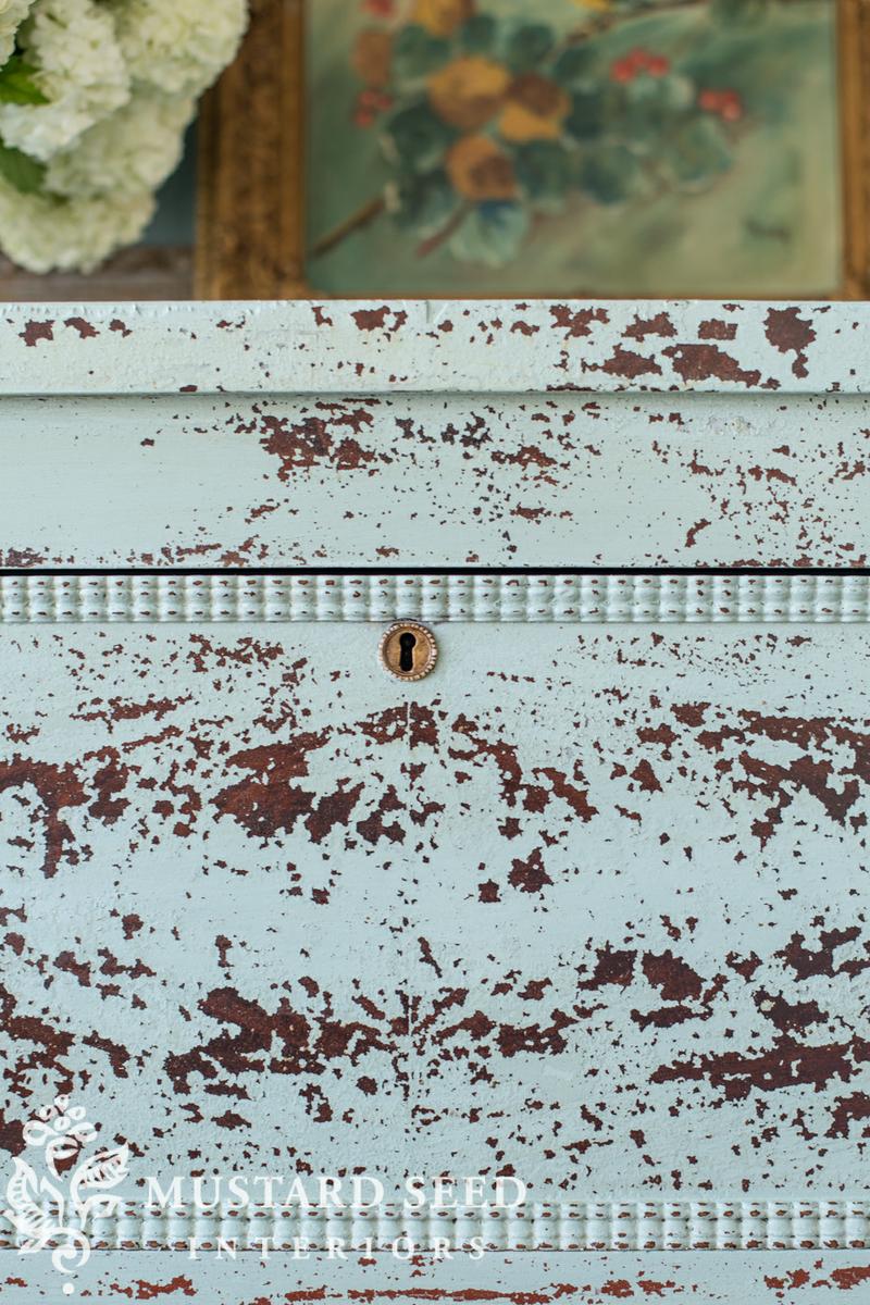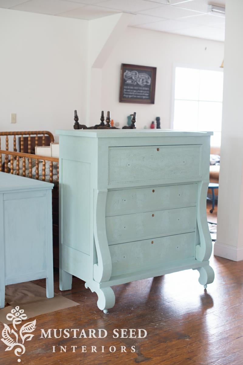 Para ello mezcló una parte de Eulalie Sky y dos partes de Layla Mint de Miss Mustard Seed. Siendo este el resultado, una pieza aligerada y un color a medida que resulto perfecto para esta pieza.