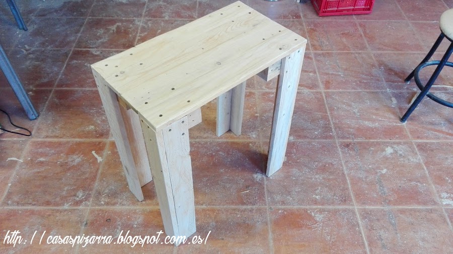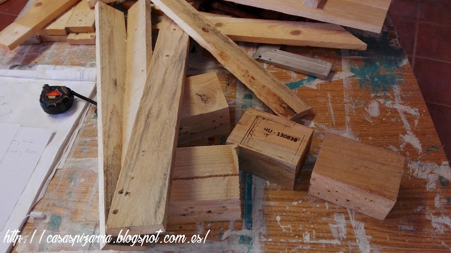 Con un taco de los palets y dos listones hice cada una de las cuatro patas.