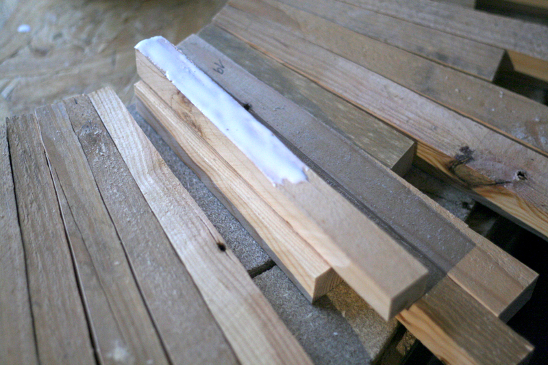 Sobre esta base colocamos nuestros listones ya cortados a diferentes largos para hacer un replanteo y comprobar que todo ha salido bien.