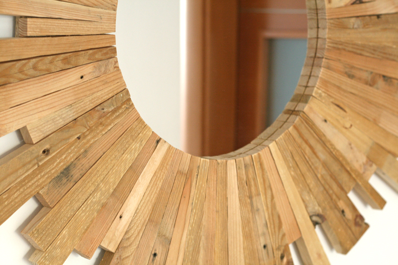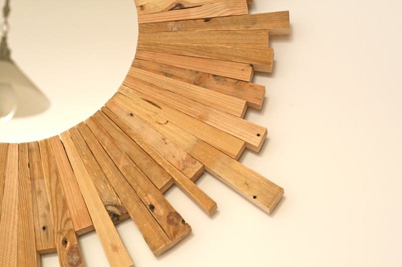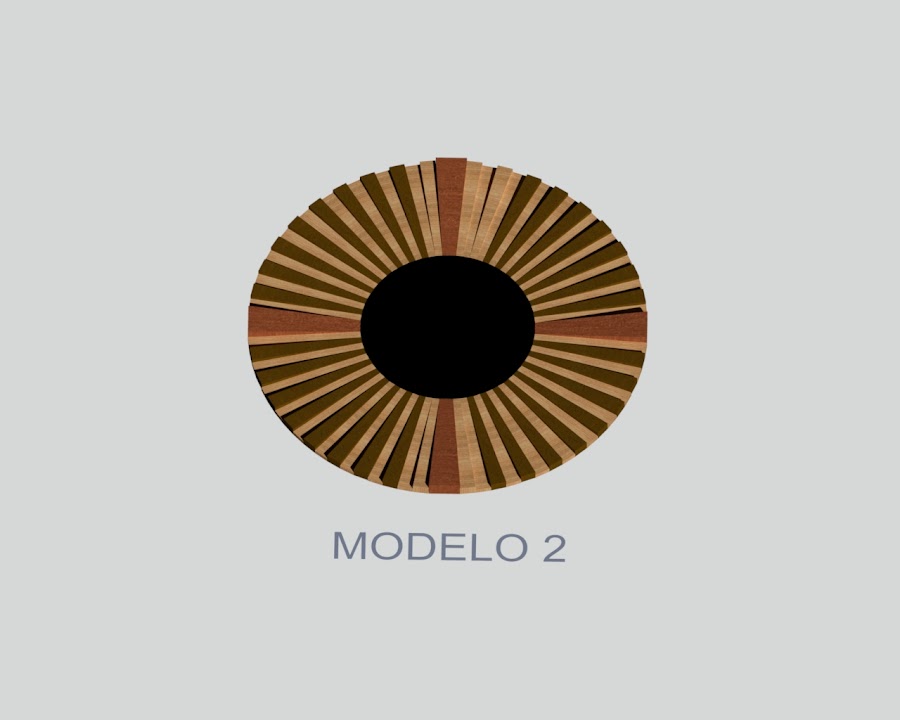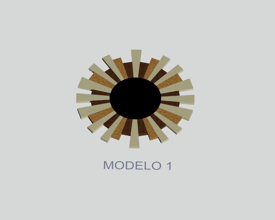 En mi caso, adapte el diseño a mis medidas. El espejo cuenta con dos diámetros diferentes. El total o exterior, que será el extremo exterior de los listones y otro diámetro interior, que será el del interior de los listones, similar al diámetro del espejo.