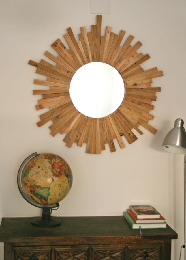 Tras mucho pensar y pensar, recordé que tras la mudanza, descubrí algo de madera que podía reciclar de alguna manera. Recordé que Abi mencionó en alguna ocasión que necesitábamos un espejo para el recibidor y "Voila" (Vualá), até cabos y me puse manos a la obra.