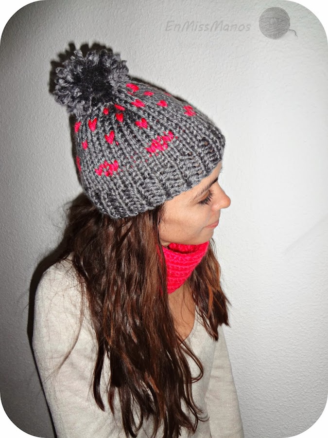 Mis inicios también en el punto a dos agujas, con el gorro y cuello, y los mitones.