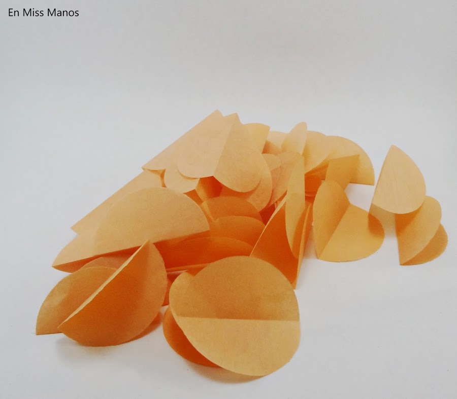 Yo no lo recomiendo hacer con papel de seda como yo, porque el pegamento hace que se doblen mucho las mitades!