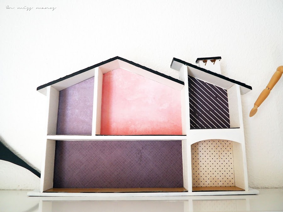 Para el interior utilicé los papeles de scrapbooking, en las paredes, y en el suelo usé el suelo vinílico.