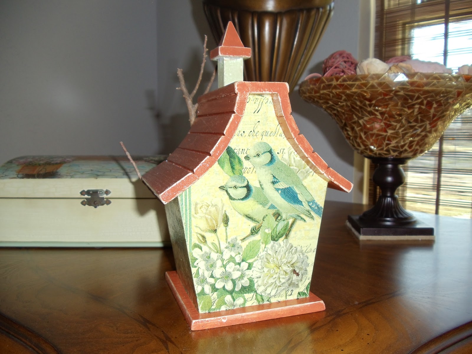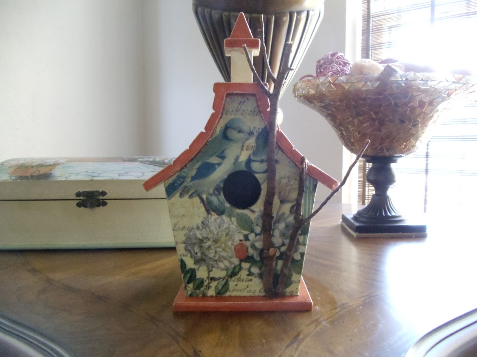 Entre tantas cosas que me faltan por hacer tenia pendiente la de decorar un casita para pajaros bueno pues hace tiempo me puse a decorarla pero el resultado no fue de mi agrado, queria algo diferente y con un poco de color ya que casi siempre mis decoraciones son en tonos claros.