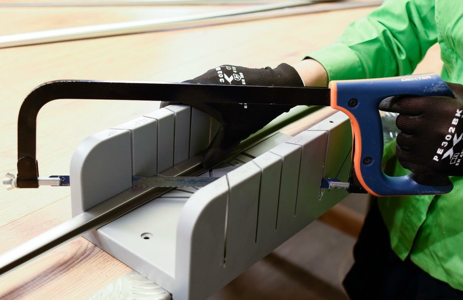2. Una vez elegido el acabado y planteado el diseño (pues puede que deseemos dejar algún mueble sin forrar para dar contraste, por ejemplo), tendremos que desmontar las puertas, para medir los bordes y cortar los perfiles. Para ello será útil contar con una caja de ingletes y una sierra de arco.