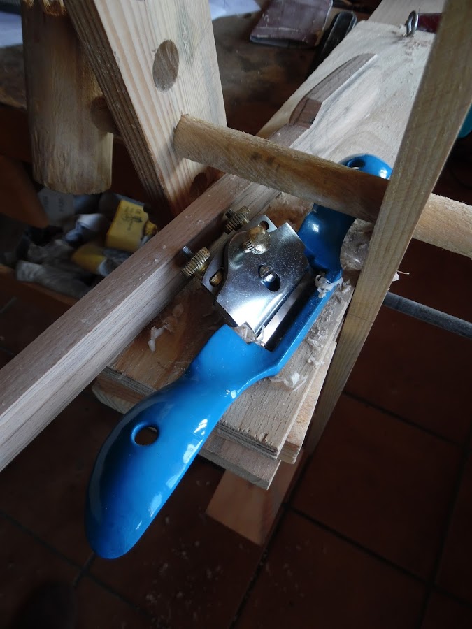 Lo primero fue cortar la pata a la silla.. Después la cepillé y con esto, aparte de dejarla recta y escuadrada que, a la hora de utilizar una sierra es mucho más cómodo, eliminé toda la pintura de la madera que, en este caso estaba lacada y así lo hice de forma natural asegurándome de dejar sólo la madera virgen ya que será un utensilio para cocinar.