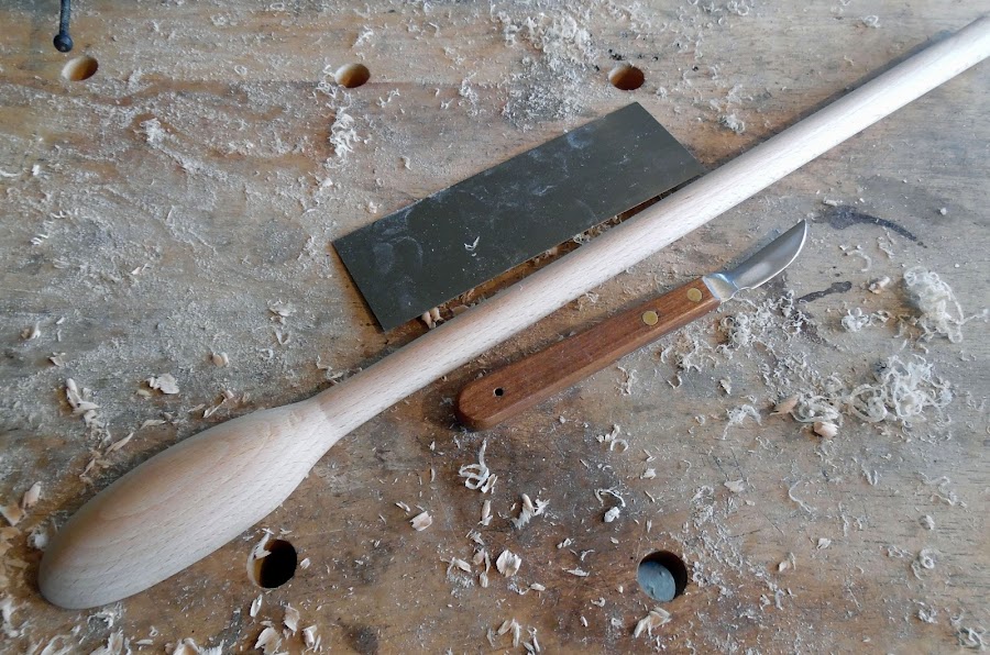 Para dejar la superficie completamente lisa la raspé con una cuchilla de ebanista como la que se ve en la siguiente foto.