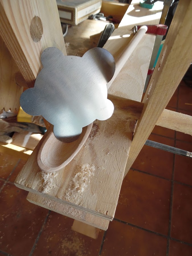 La pinza que sujeta la cuchara sólo la puse para hacer la foto pero os diré ahora cómo hacerlo: