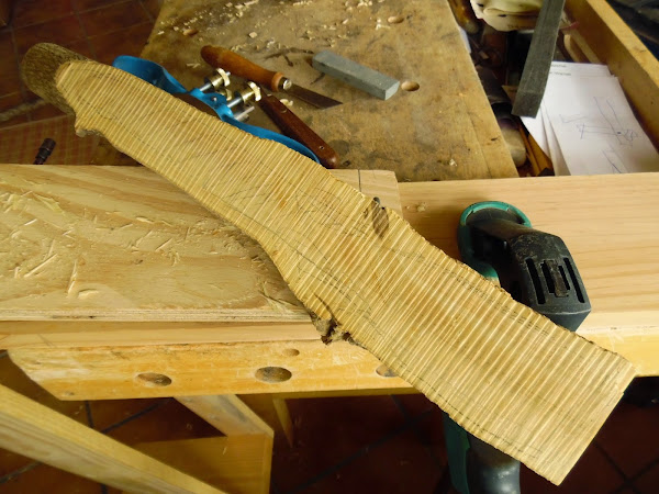 Después de rebajar este lado, ahora ya podemos ir diseñando la espátula.