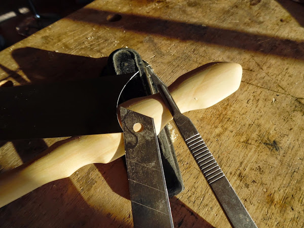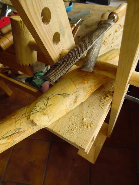 Esta es una escofina de grano grueso con lo cual hay que tenerlo en cuenta a la hora de trabajar y no acercarnos hasta la línea marcada ya que deja unos surcos bastantes profundos en la madera. Para acercarnos a la línea utilizaremos la lija.